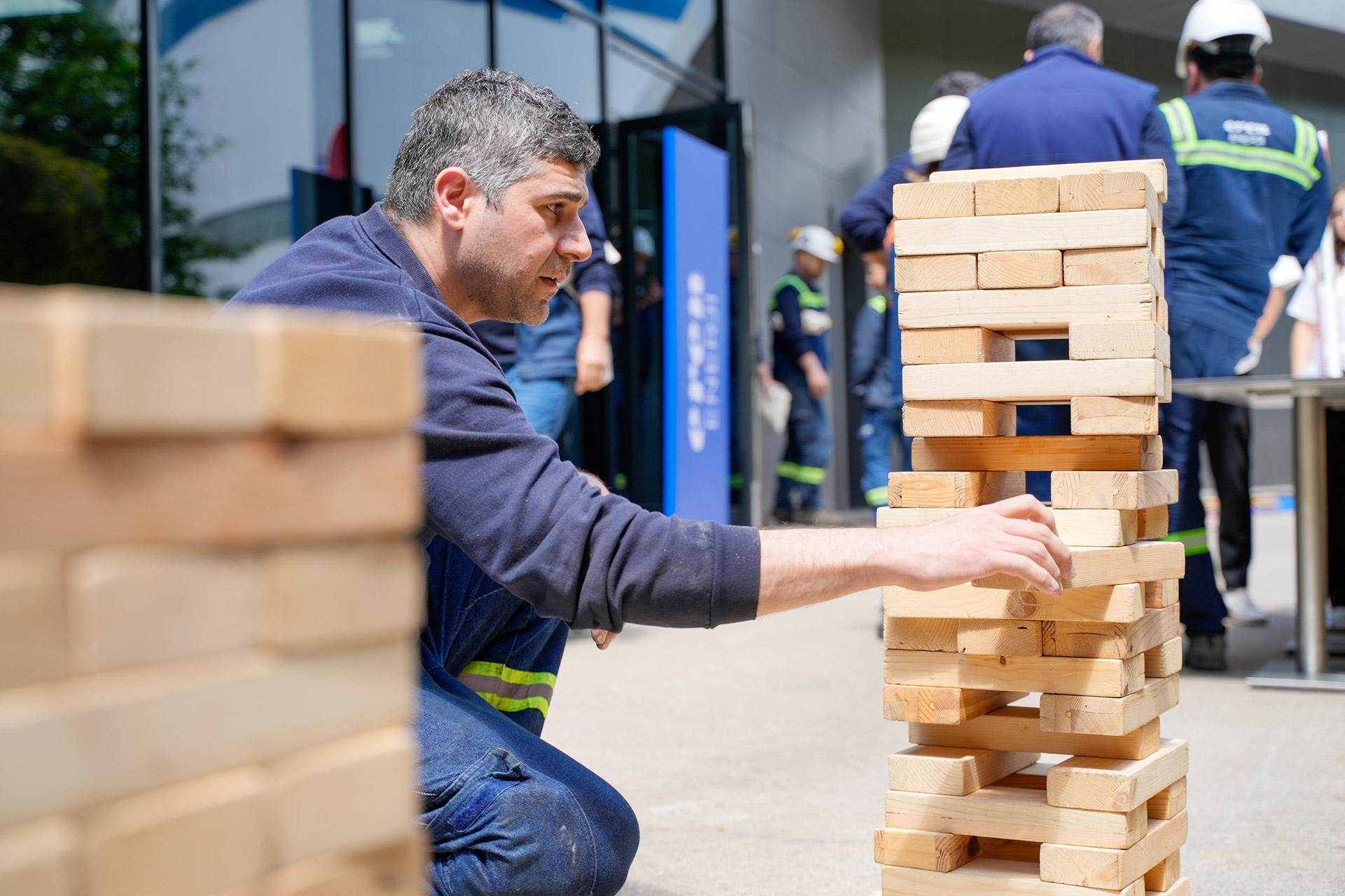 Etkinlik alanına kurulan tırmanma duvarı ile çalışanlar, sınırlarını zorlayarak özgüven kazanır. Bu fiziksel etkinlik, güvenli ekipman kullanımına dikkat çekerek iş güvenliği bilincini destekler.